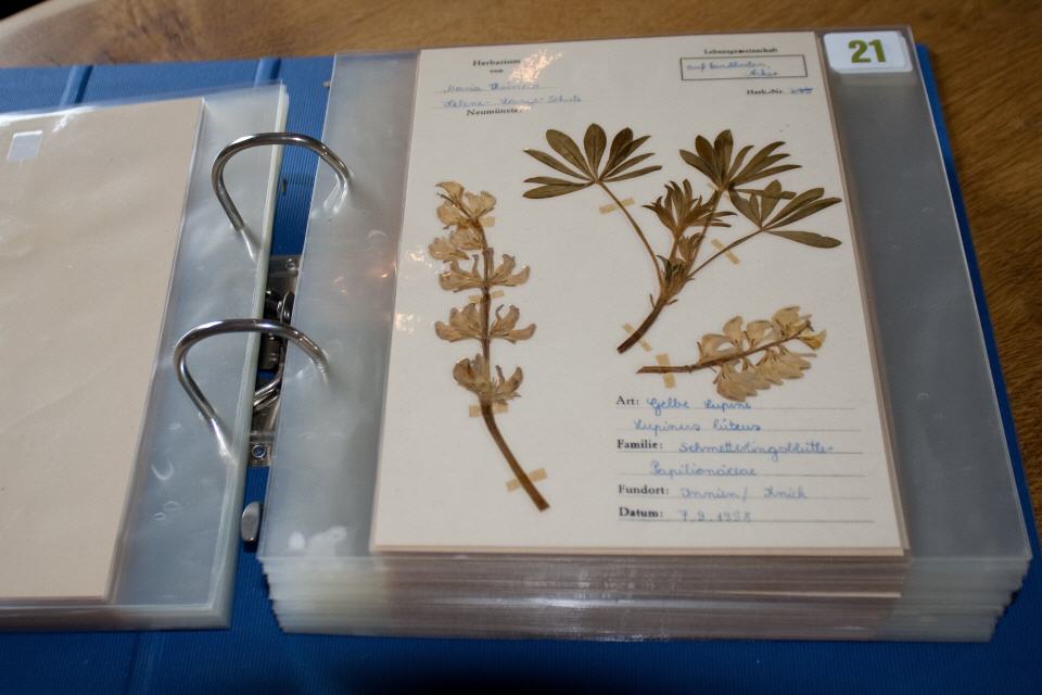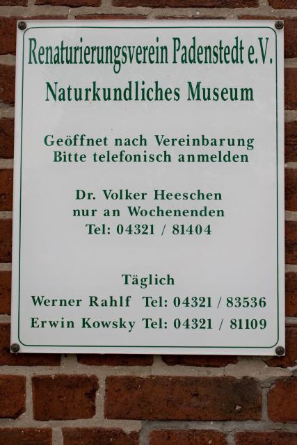 Tierpräparate; eingebettet in ihrem natürlichen Lebensraum (Wald und Meeresküste). Rechts von der Eingangstür ist eine von Joost Bärwald gestiftete Sammlung heimischer Früchte neben von Schülern aus Holz gefertigten Kunstwerken sowie einem großen in Padenstedt von ihm gefundenen Bernstein zu besichtigen.